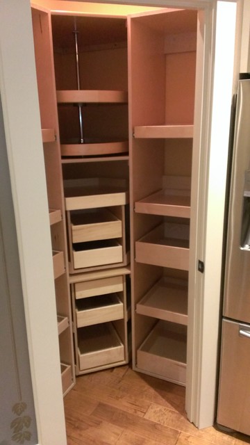 Corner Kitchen Pantry Cabinet. In this traditional kitchen you can see a set of wire shelves in fact, a curved corner cabinet can make a great pantry. Extreme caution should be used when maneuvering large cabinets to avoid scratching the cabinet or existing walls.