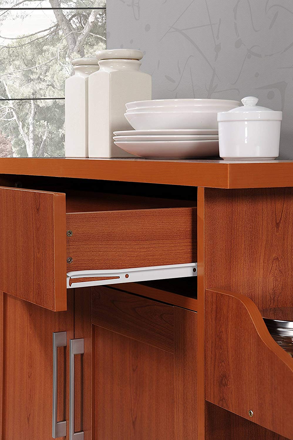 The hodedah wheeled kitchen island with spice rack and towel holder is a stylish and elegant addition to any home.this kitchen island is available in multiple finishes and you can choose the 1 that blends with your existing interiors.
