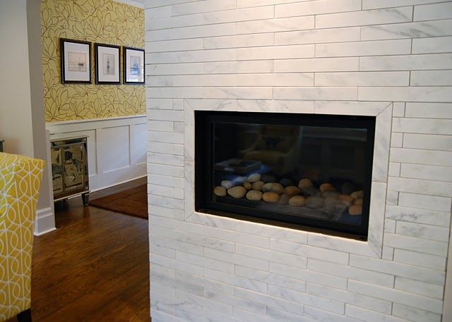 How to tile a fireplace.